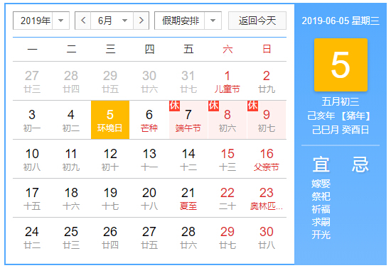 6月7日(星期五)至6月9日(星期日)放假,共3天。6月10日(星期一)上班。