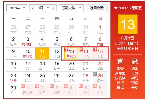 2019年中秋節(jié)放假通知
